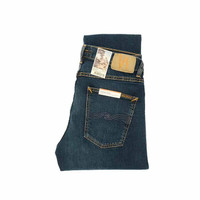 - This pair of jeans, Lean Dean "New Ink", is made of 12 oz. stretch denim. The silhouette is a slim tapered fit that tapers evenly from below the knee to the hem. The front is zippered, washing-processed to be a deep dark indigo hue, and the back pockets are positioned low to give a natural sagging look even in a true-to-size fit. The tonal discolored N-stitching on the back pockets matches the overall look. - Material: 12oz. Stretch Denim (99% Cotton / 1% Polyurethane) - Made in Tunisia - Model Wearing Size: W30 (Height 170cm / Weight 52kg)