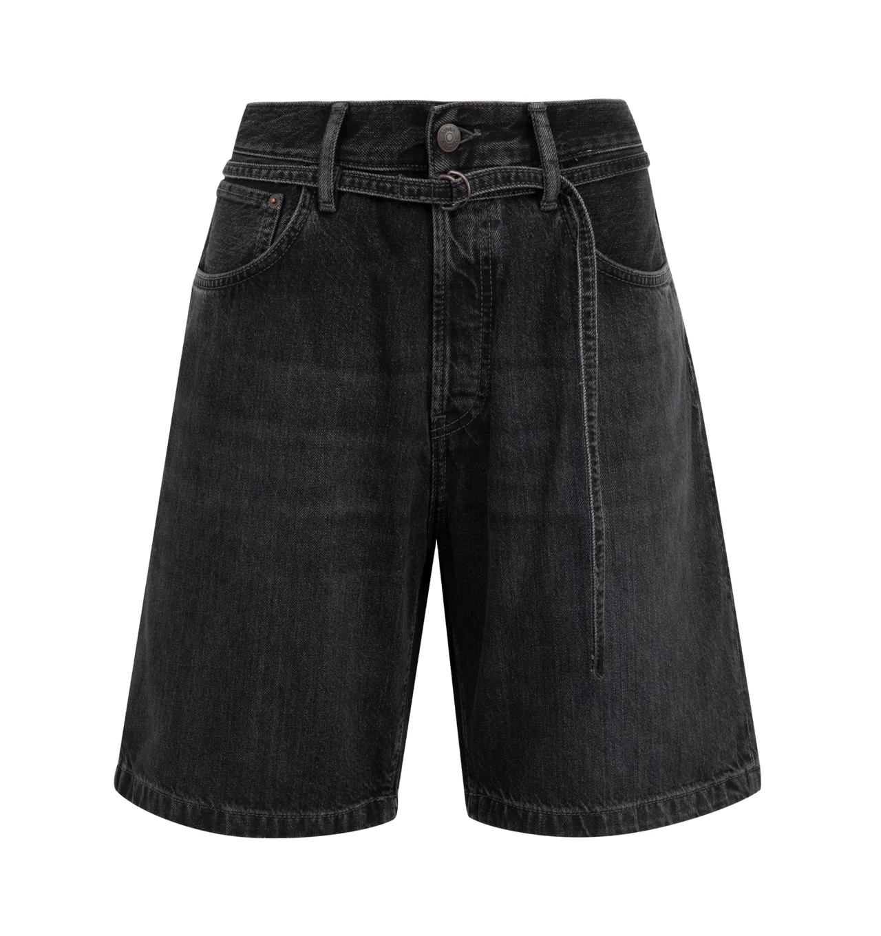 ACNE STUDIOS Loose Fit Denim Shorts featuring loose fit, low to mid waist, straight leg, knee length, thin belt, 5-pocket construction and button fly. 100% cotton. DESIGNER STYLE ID: CE0048 COLOR: 900 BLACK