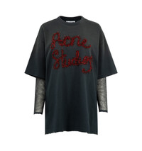 ACNE STUDIOS Layered Logo T-Shirt featuring regular fit, mesh sleeves, ribbed neckline and tinsel-inspired logo embroidery. 100% cotton. 100% nylon. Embroidery: 65% nylon, 35% polyester. DESIGNER STYLE ID: AL0503 COLOR: AA2 ANTHRACITE GREY