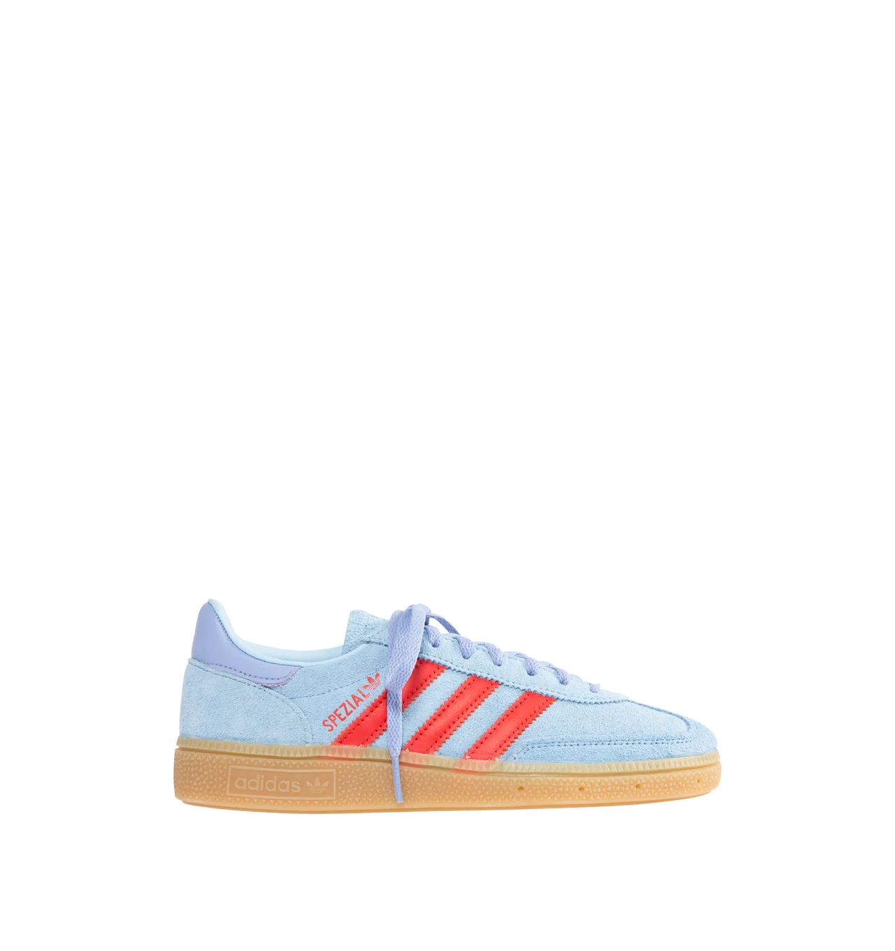 ADIDAS Handball Spezial Sneaker featuring smooth leather upper accented with premium suede details, regular fit, lace closure, synthetic lining and rubber outsole. DESIGNER STYLE ID: JR3639 COLOR: GLOBLU/RED/BLUSPA