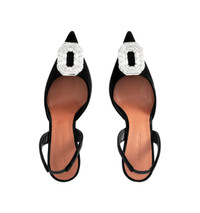 AMINA MUADDI Camelia 90 Velvet Slingback Pumps featuring rectangular crystal embellishments on the vamps, pointed toe and 90mm heels. Upper: velvet. Lining: leather. Sole: leather insole, leather and rubber sole. Made in Italy DESIGNER STYLE ID: 15S365663CAM COLOR: VELVET BLACK