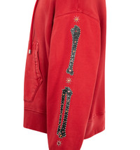 AMIRI Bones Studded Zip Hoodie featuring oversized fit, zip front closure, bones appliques with stud detailing and front patch pockets. 100% cotton. DESIGNER STYLE ID: AMT0JR1012 COLOR: 633 RED ROSE