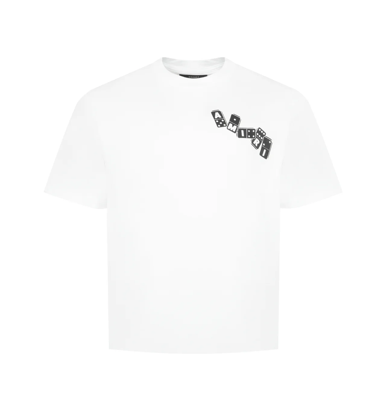 AMIRI Domino Tee featuring round neck, chest logo, back graphic print, short sleeves, straight hem and tonal stitching. 100% cotton. DESIGNER STYLE ID: AMT0JR1023 COLOR: 100 WHITE
