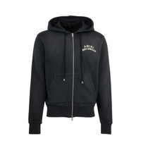 AMIRI Hollywood Zip Hoodie featuring kangaroo pocket, double-zip closure, fixed hood and graphic logo on front and back. 100% cotton. DESIGNER STYLE ID: AMJYHD1132 COLOR: BLACK