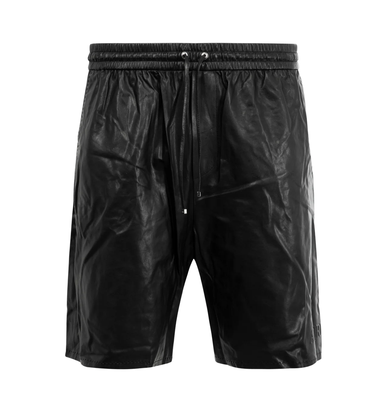 AMIRI Lightweight Leather Short featuring regular fit, side pockets, elasticated waistband, drawstring closure and side pockets. Leather. DESIGNER STYLE ID: AMLTSH1017 COLOR: BLACK