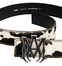 AMIRI MA Belt featuring hair-on leather belt, graphic pattern printed throughout, enameled logo hardware at post-stud fastening and 4cm. Leather. Made in Italy. DESIGNER STYLE ID: AMHABE1004 COLOR: 200 DARK BROWN