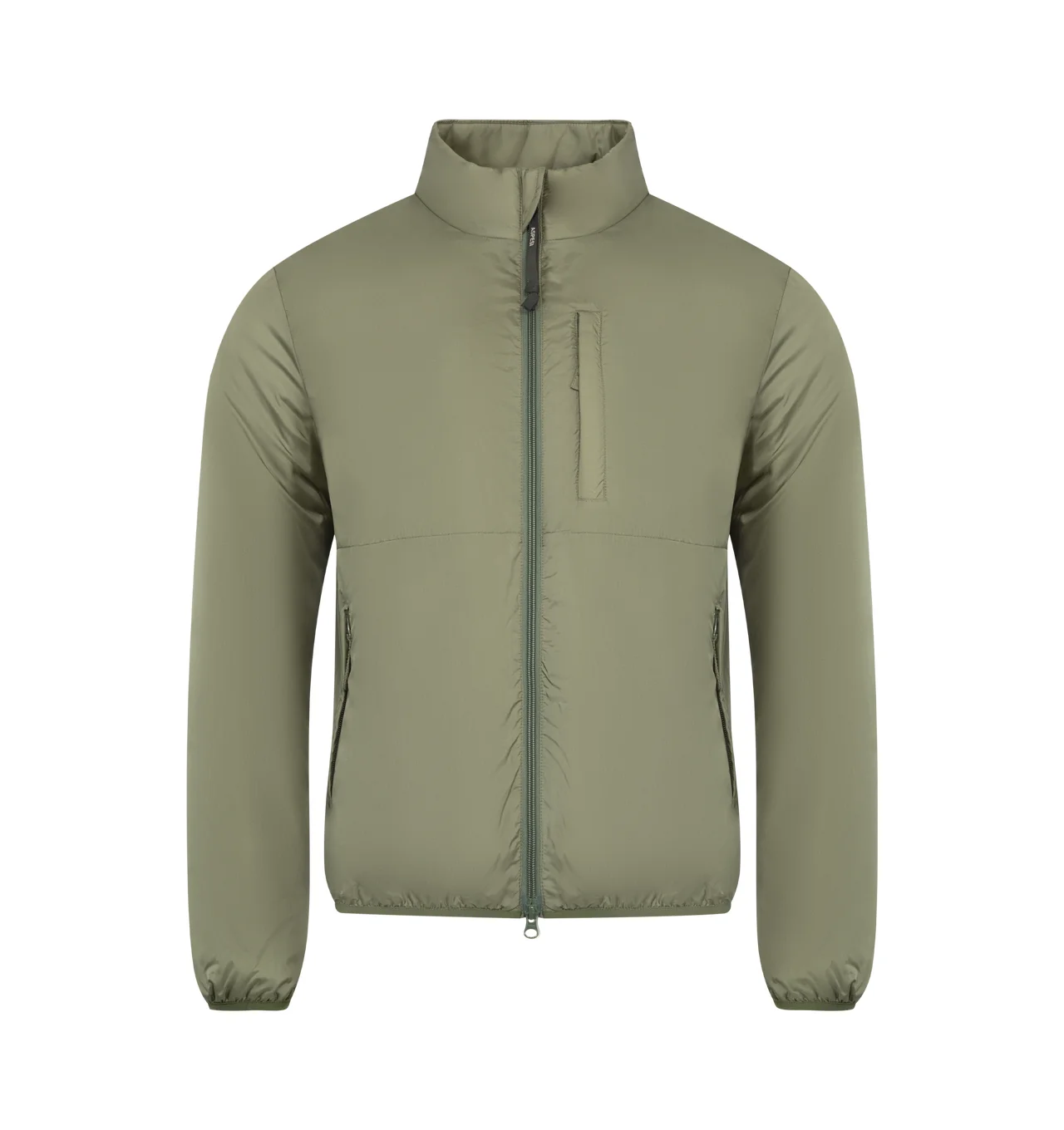 ASPESI Jil Con Jacket featuring a band collar, a front zip fastening, long sleeves, a chest pocket, front zipped pockets and a straight hem. 100% polyamide. DESIGNER STYLE ID: S6-I-2I36-7961 COLOR: 96169 OLIVA/OLIVE
