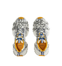 BALENCIAGA 3XL Extreme Laces Logo Sneaker featuring leather free, polyester and polyurethane, worn-out effect, multiple lace details with Balenciaga logo all around the upper and on the sole, Balenciaga logo at the edge of the toe and at back, embossed size on the upper and at the back of the heel, 3XL rubber branding on the tongue with reflective detail and back and tongue pull-on tab with reflective detail. Upper: polyester, polyurethane. Sole: rubber, EVA. Insole: foam. DESIGNER STYLE ID: 825597-W3XHL COLOR: 9471 WHITE/NAVY/ORANG/GRY