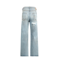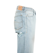 BALENCIAGA Distressed Relaxed Fit Pants featuring cotton denim, dirty details, worn-out details, mid-waist, covered zip fly, 5 pockets, 5 belt loops, Balenciaga engraved flex button and Balenciaga Jeans patch at back. 100% cotton. Made in Italy. DESIGNER STYLE ID: 851352-TTW74 COLOR: 4200 LIGHT BLUE