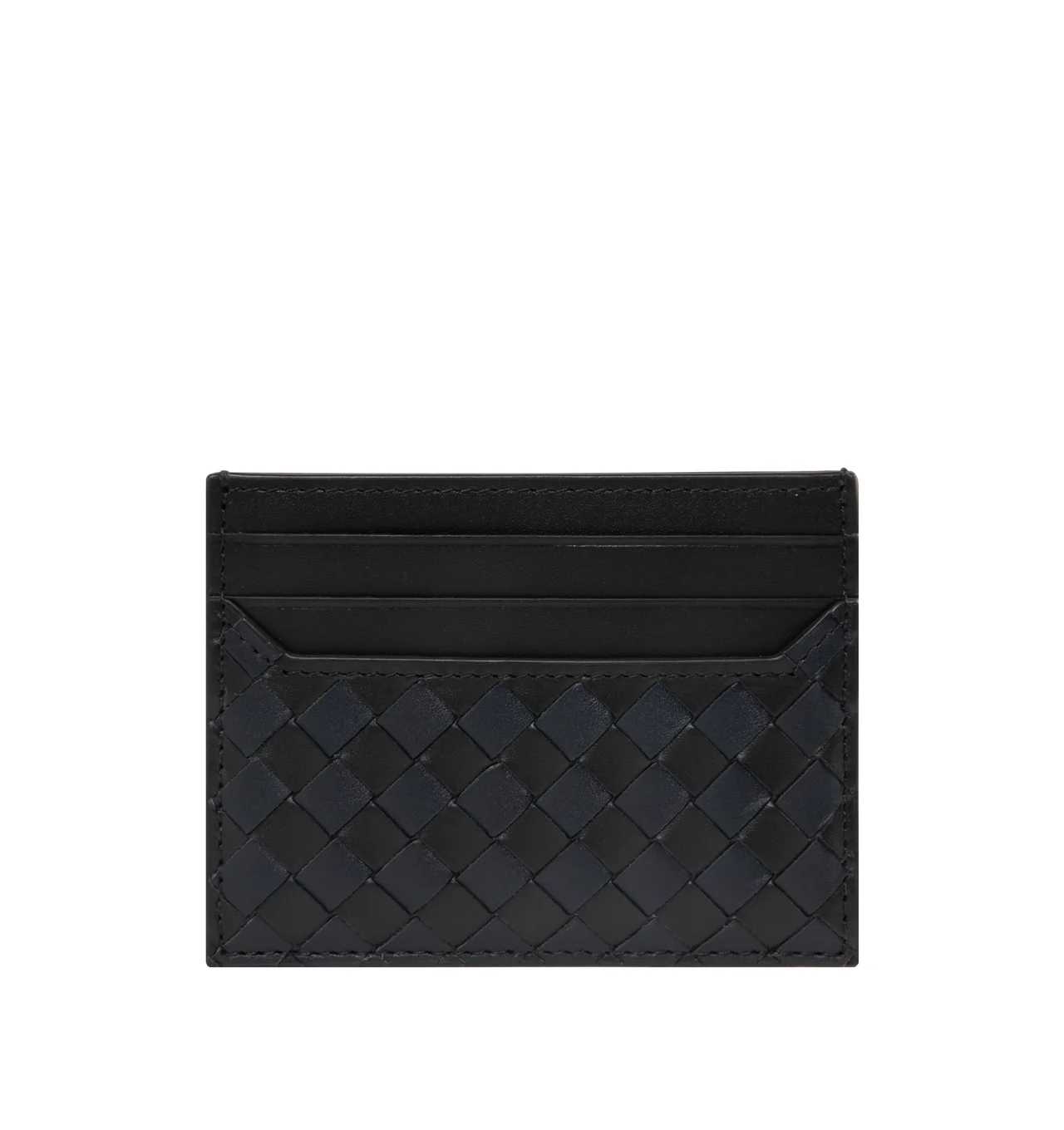 BOTTEGA VENETA Intrecciato Credit Card Case featuring color block intrecciato leather card case, six card slots and one central pocket. Calfskin. 3.1" x 4.1" x 0.2". Made in Italy. DESIGNER STYLE ID: 817397-V5I41 COLOR: 1126 BLA/MIDNIGHT/BLA