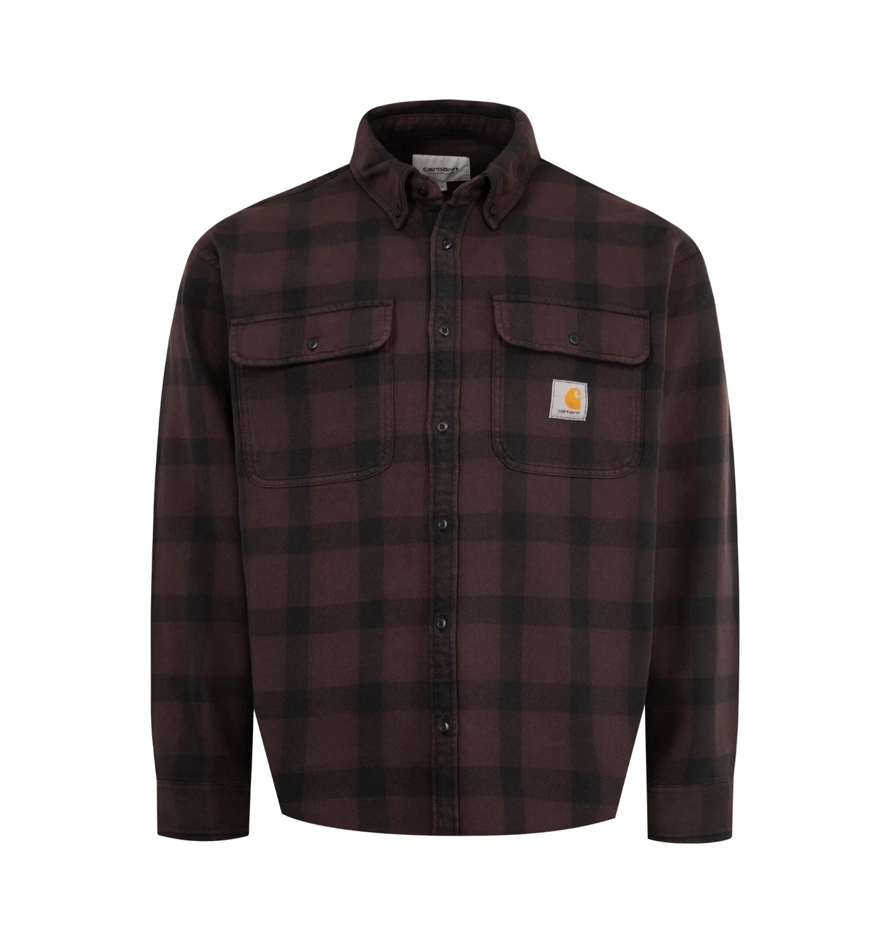 CARHARTT WIP Edmands Shirt featuring a loose fit from midweight, overdyed cotton twill with an allover check pattern and two chest pockets, one of which features a woven Square Label. 100% cotton. DESIGNER STYLE ID: I035951 COLOR: 3J2XX EDMANDS CHECK/NATURAL/PALISANDER
