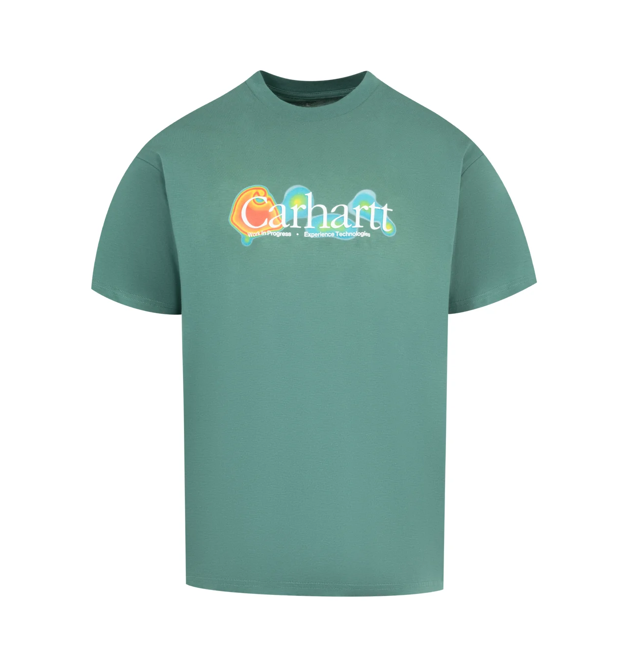 CARHARTT Experiential Short Sleeve Graphic T-Shirt featuring midweight organic-cotton jersey, crewneck, short sleeves and graphic on front. 100% organic cotton. DESIGNER STYLE ID: I035442 COLOR: 2M2XX SILVER PINE