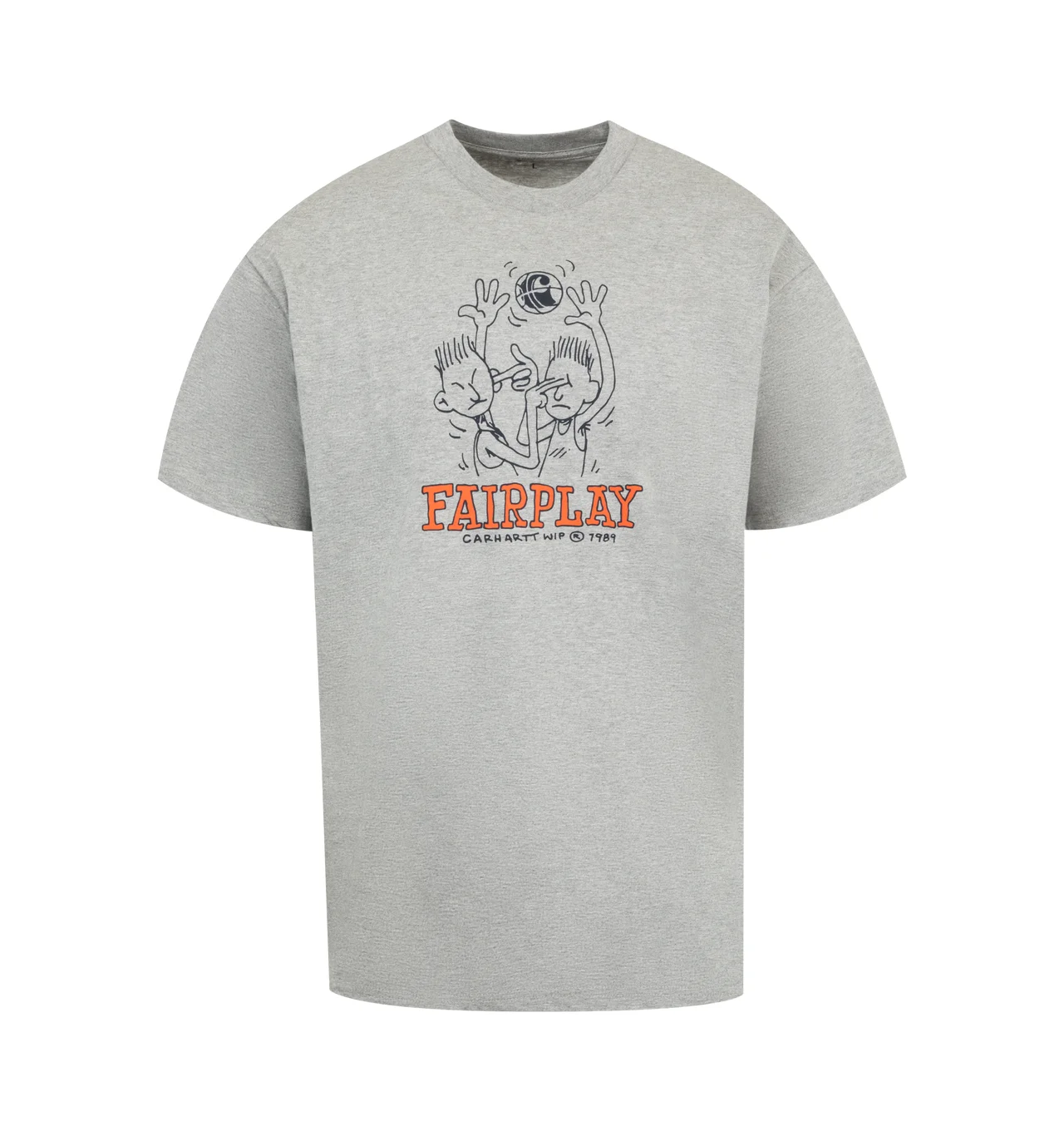 CARHARTT Fairplay Short Sleeve Graphic T-Shirt featuring midweight organic-cotton jersey, crewneck, short sleeves and graphic on front. 100% organic cotton. DESIGNER STYLE ID: I035433 COLOR: V6XX GREY HEATHER