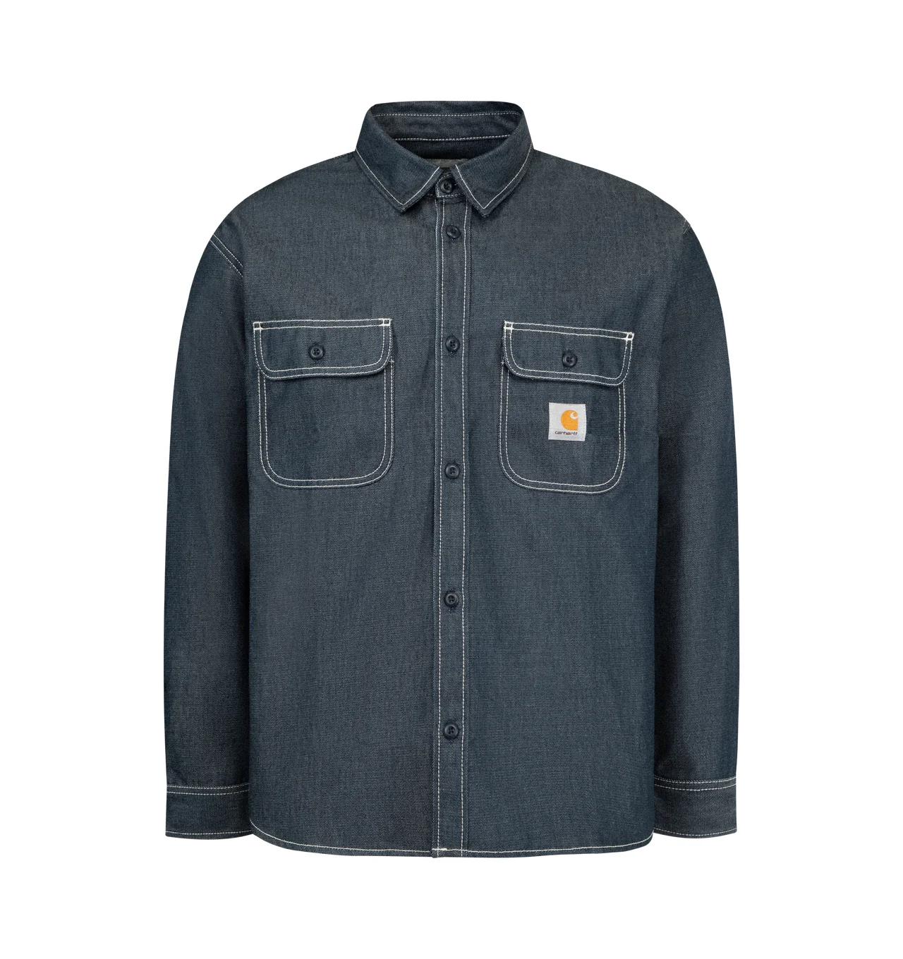 CARHARTT WIP Tigan Shirt Jacket featuring rugged workwear style with a clean silhouette, unlined poly-cotton fabric, button front, dual chest pockets and heavyweight denim. 50% polyester, 50% cotton. DESIGNER STYLE ID: I036263 COLOR: 0101 BLUE