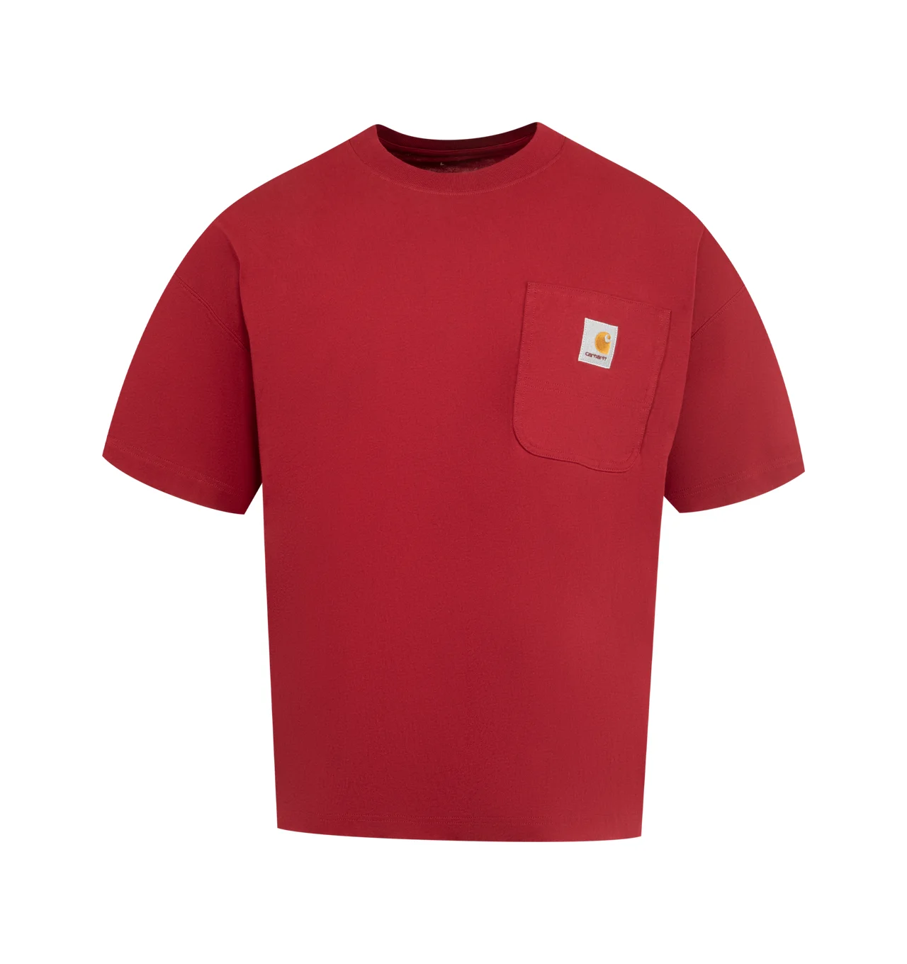 CARHARTT Work Pocket T-Shirt featuring midweight organic-cotton jersey, crewneck, short sleeves and single chest pocket with logo. 100% organic cotton. DESIGNER STYLE ID: I035523 COLOR: H8XX SCARLET