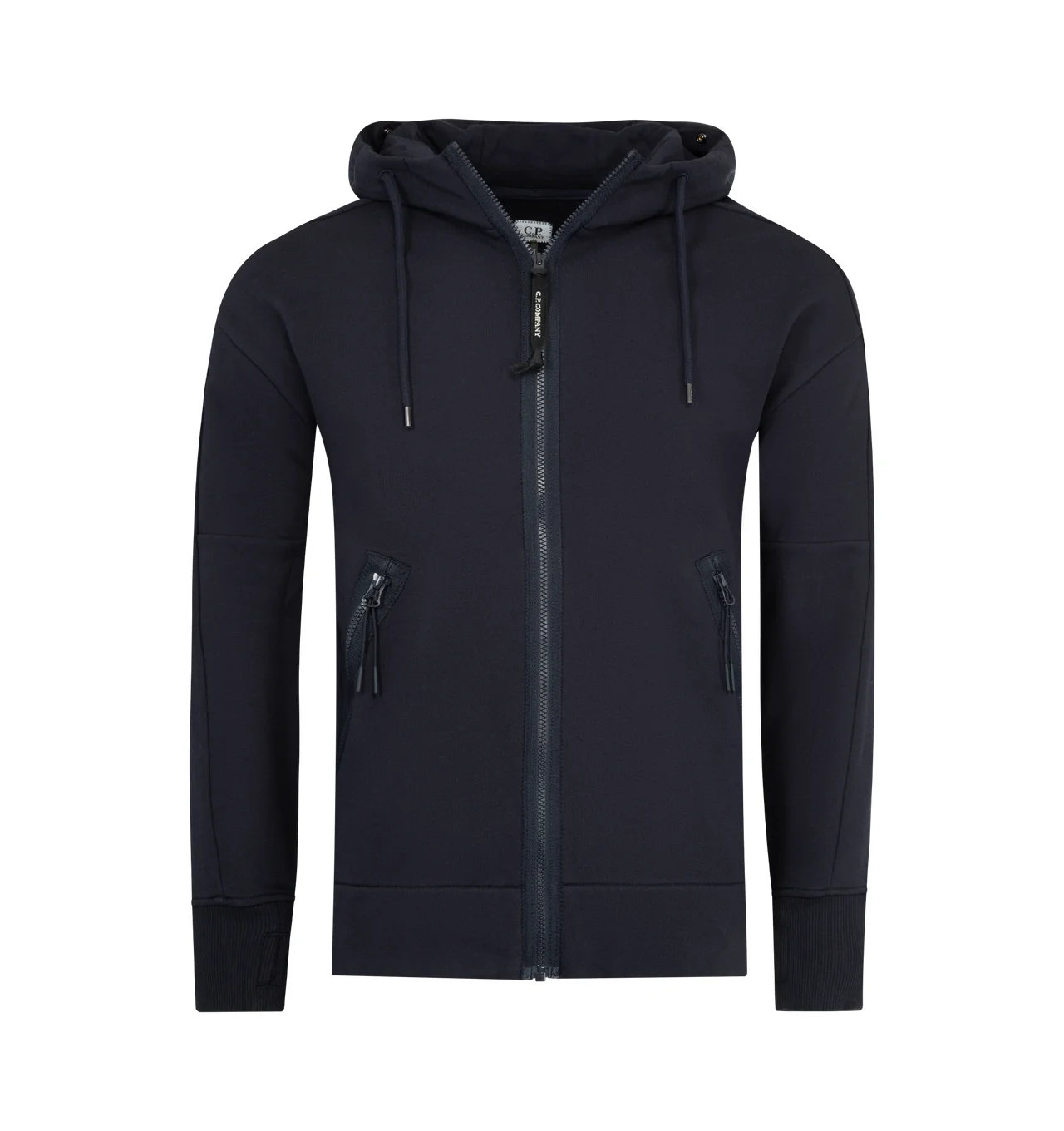 C.P. COMPANY Diagonal Raised Fleece Goggle Sweatshirt featuring adjustable Goggle hood, side zip pockets, ribbed cuffs and hem, thumb hole on cuffs and regular fit. 100% cotton. DESIGNER STYLE ID: RCCMSS715A-005086W COLOR: 888 TOTAL ECLIPSE