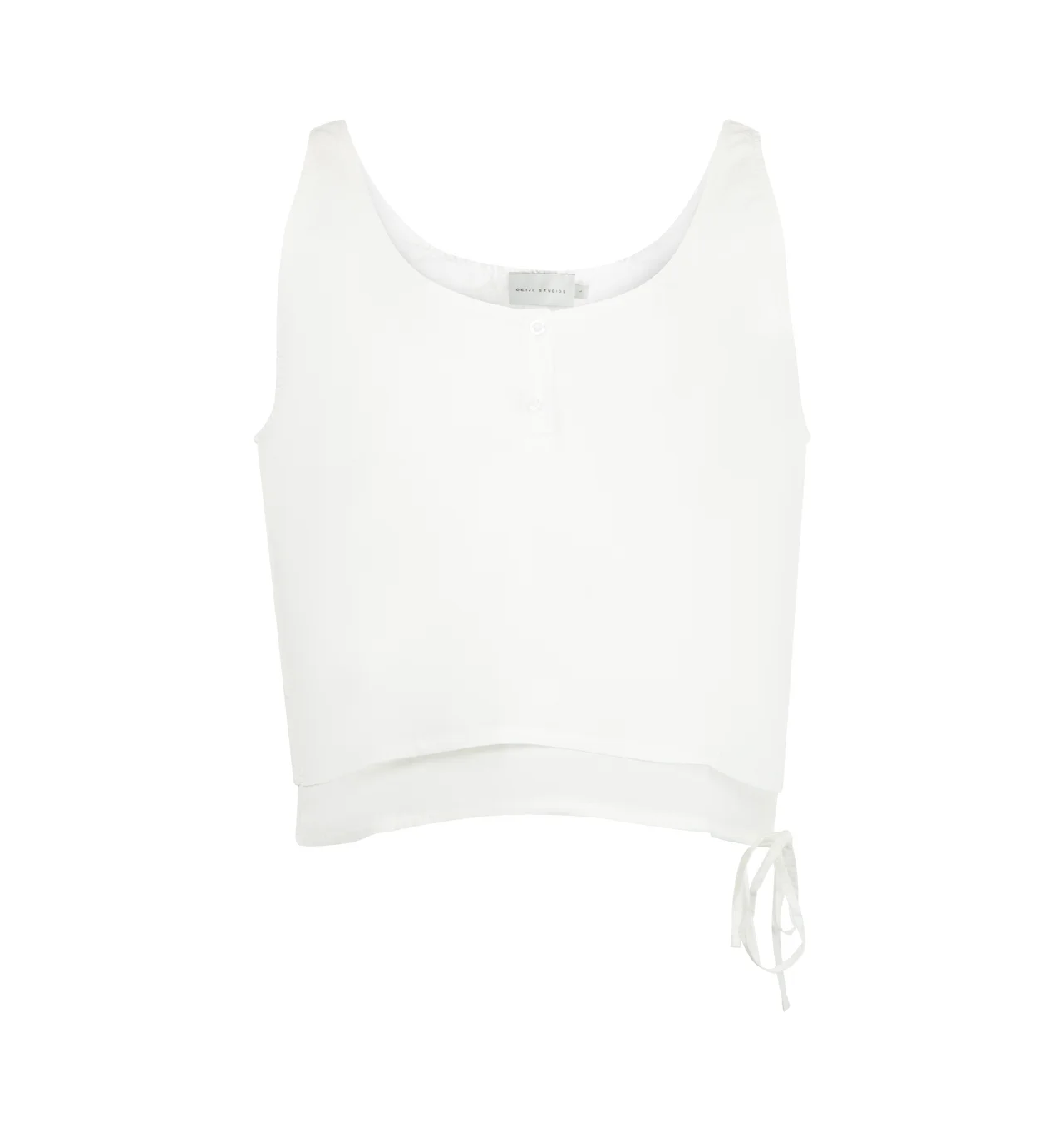 DEIJI STUDIOS Layered Top featuring a soft scooped neckline, relaxed silhouette, drawcord hem and cropped fit. 100% organic cotton. DESIGNER STYLE ID: FW25-03-WHT COLOR: WHITE