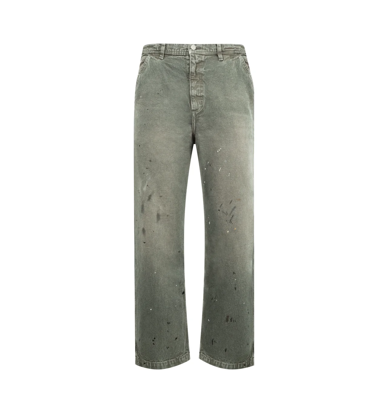 ENFANTS RICHES DEPRIMES Paint Pant featuring cotton canvas, five pocket style, belt loops, hammer loop and carpenter side pockets and distressing throughout. 100% cotton. DESIGNER STYLE ID: 050-433 COLOR: WASHED GREEN