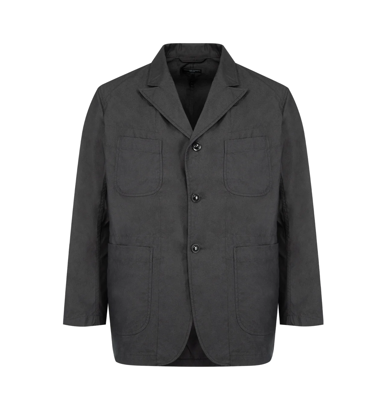 ENGINEERED GARMENTS Bedford Jacket featuring peaked lapels, four patch pockets, reinforcement fabric and visible stitching at stress points like the shoulders and pocket interiors and three button closure. 80% cotton, 20% polyester. Made in USA. DESIGNER STYLE ID: RV137 COLOR: EU008 CHARCOAL