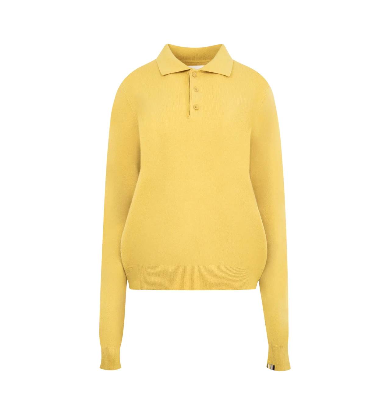 EXTREME CASHMERE Be For Sweater featuring reinvented classic polo-neck cashmere sweater with three buttons to close, rib knitted at neck, cuffs and hem and long sleeves. 89% cashmere, 10% nylon, 1% elastane. DESIGNER STYLE ID: 223-210-01-TU-01 COLOR: CORN
