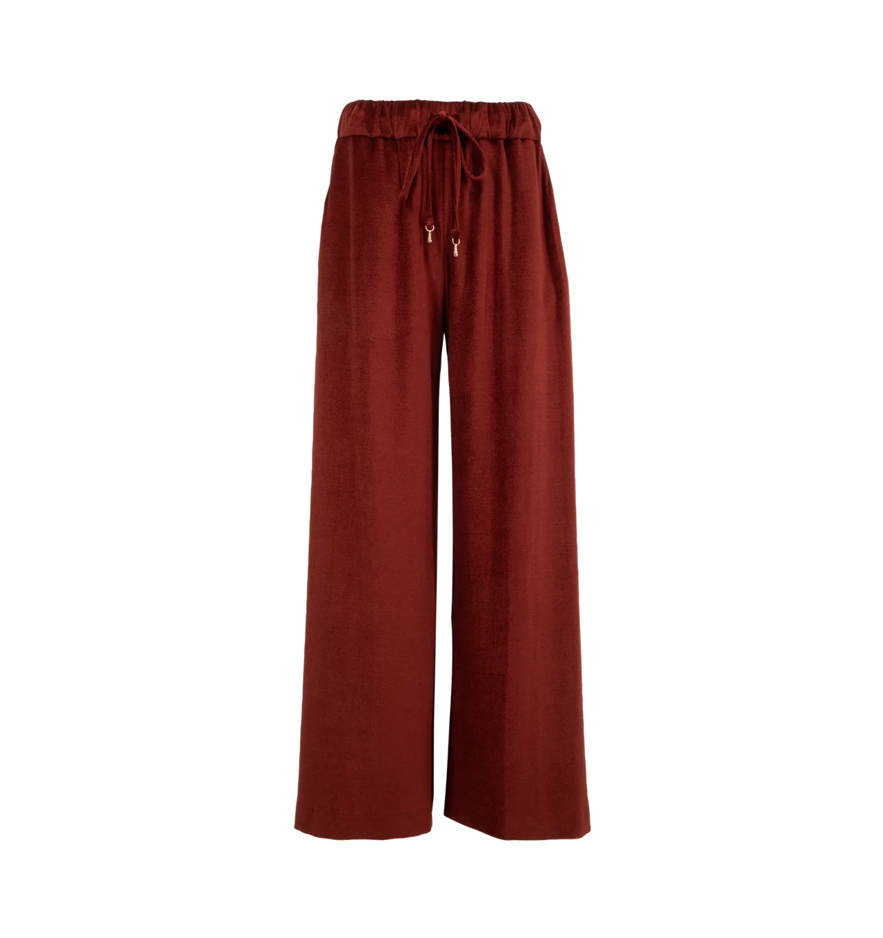 GABRIELA HEARST Gelos Pant featuring side slit pockets, elasticated drawstring waist and wide legs. DESIGNER STYLE ID: 4252023-S117 COLOR: BURNT SIENNA