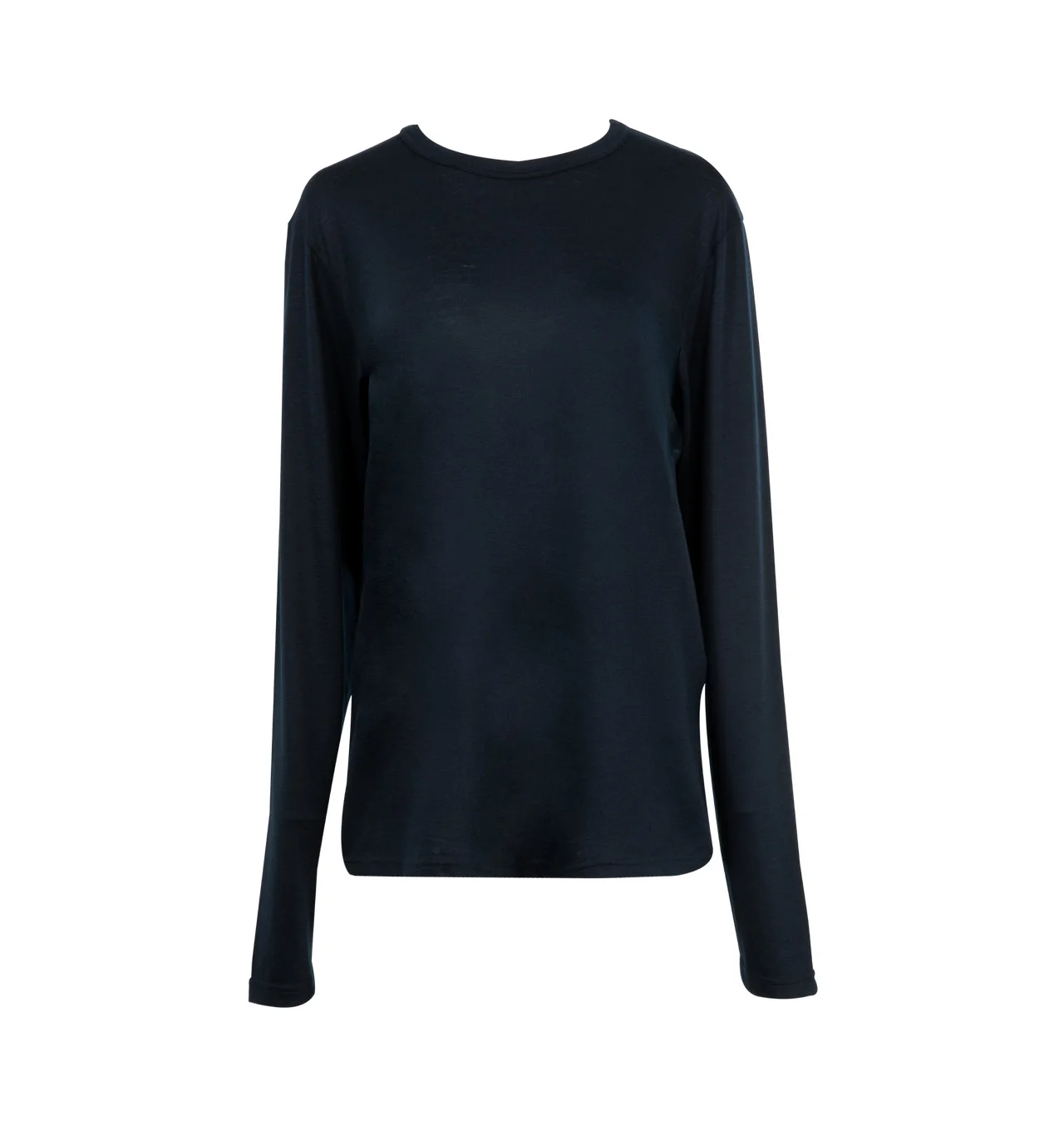 GABRIELA HEARST Pacific Long Sleeve T-Shirt featuring long sleeves, crewneck and draped fit. 100% cashmere. Made in Italy. DESIGNER STYLE ID: 251781-C117 COLOR: DARK NAVY