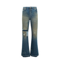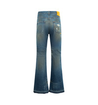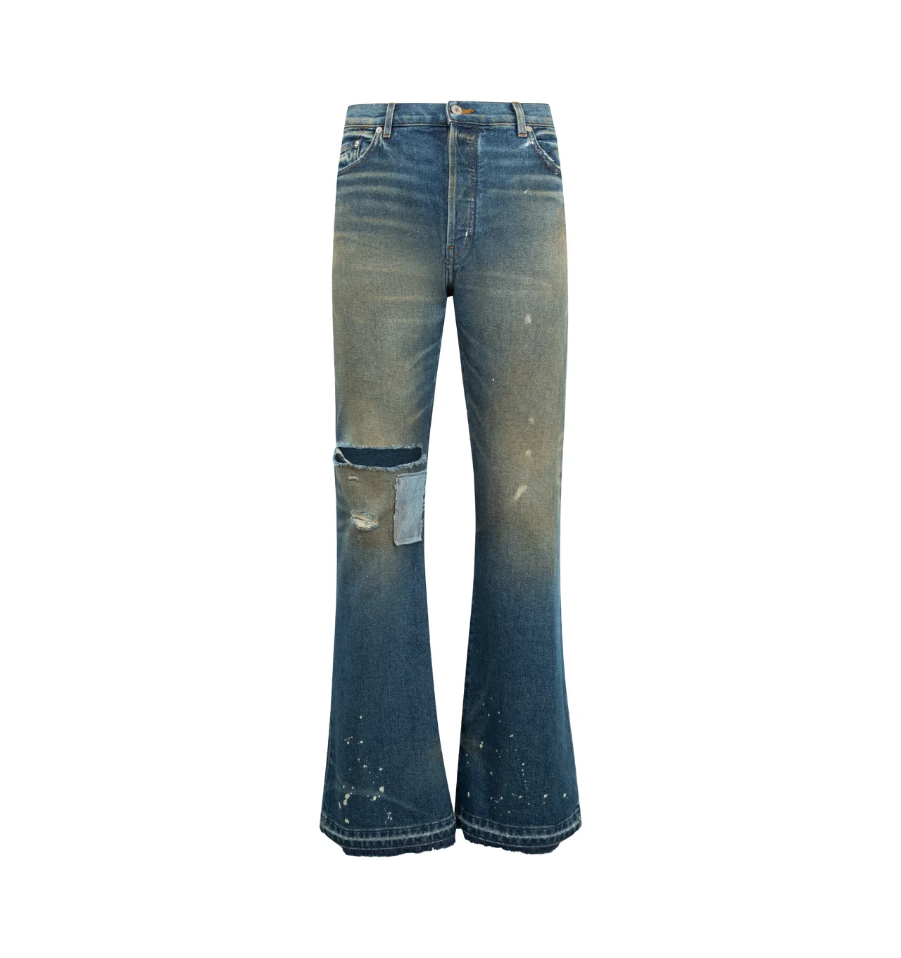 GALLERY DEPT. Dagger Bootcut Jean featuring relaxed bootcut fit, 5-pocket design, GD custom hardware, debossed tan leather GALLERY DEPT. jacron on the back waistband, embroidered GD pin detailing on the coin pocket and released hem. 100% cotton. Made in USA. DESIGNER STYLE ID: D646-40038 COLOR: INDIGO