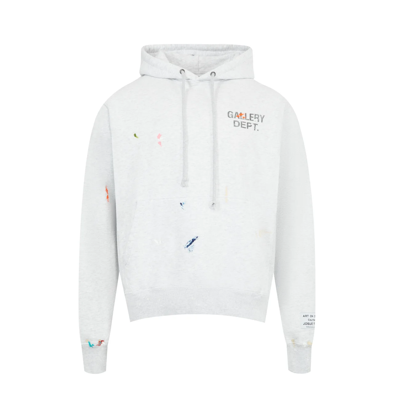 GALLERY DEPT. GD Paint Logo Hoodie featuring logotype on the front, enlarged iteration on the back, front pocket, appliqued with our 'art on display' patch by the cuff and fixed hood. 100% cotton. Made in USA. DESIGNER STYLE ID: GPH-50044 COLOR: LT HEATHER