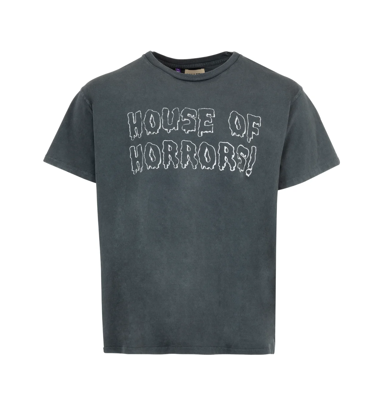GALLERY DEPT. Horrors Tee featuring relaxed fit, short sleeves, crew neck and front and back graphic. 100% cotton. DESIGNER STYLE ID: HT-10053 COLOR: VINTAGE BLACK