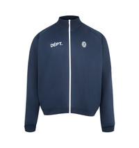 GALLERY DEPT. JK Full Zip Jacket featuring contrast sleeve detail, front welt pockets, elasticized waistband and cuffs, embroidered with FRENCH DEPT. and Chateau Josue logos on the front, plus ‘Sport Elegant’ on the back, zip-up closure and inner mesh lining. 100% cotton. Made in Portugal. DESIGNER STYLE ID: JKFZ-50042 COLOR: NAVY