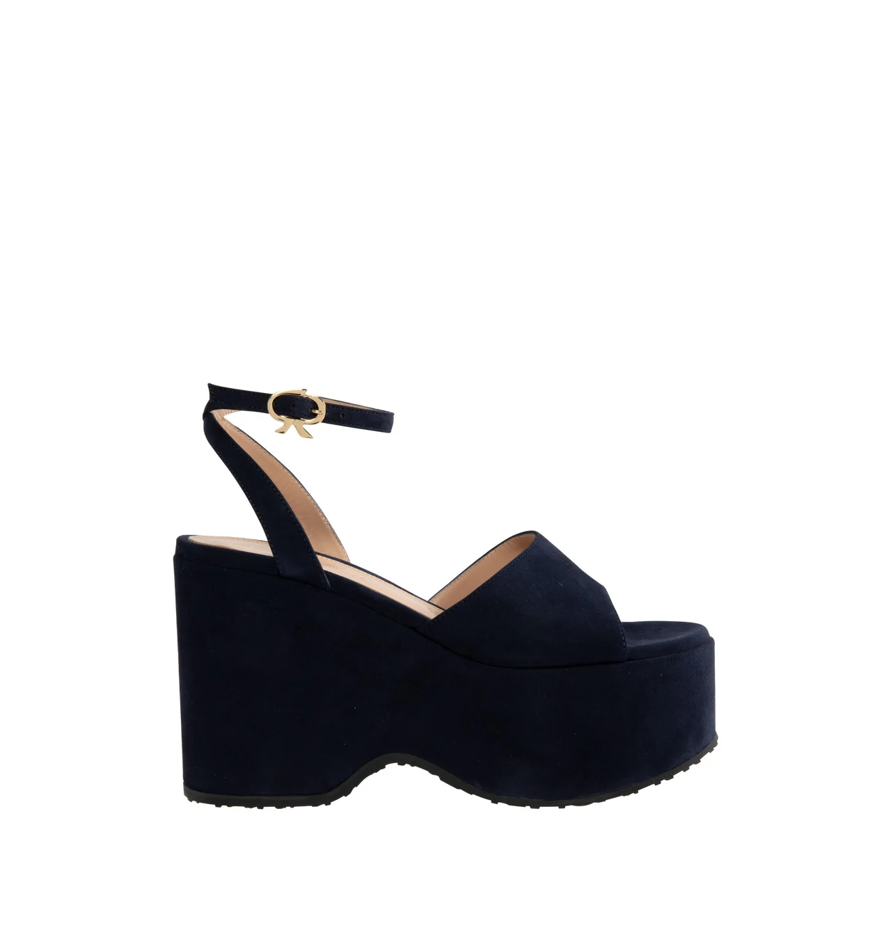 GIANVITO ROSSI Thalia Camoscio featuring round toe ankle strap with buckle, platform wedge measures 110mm at the back of the heel and is completed with a rubber sole. DESIGNER STYLE ID: G32504-45RIC-CAM COLOR: DENIM