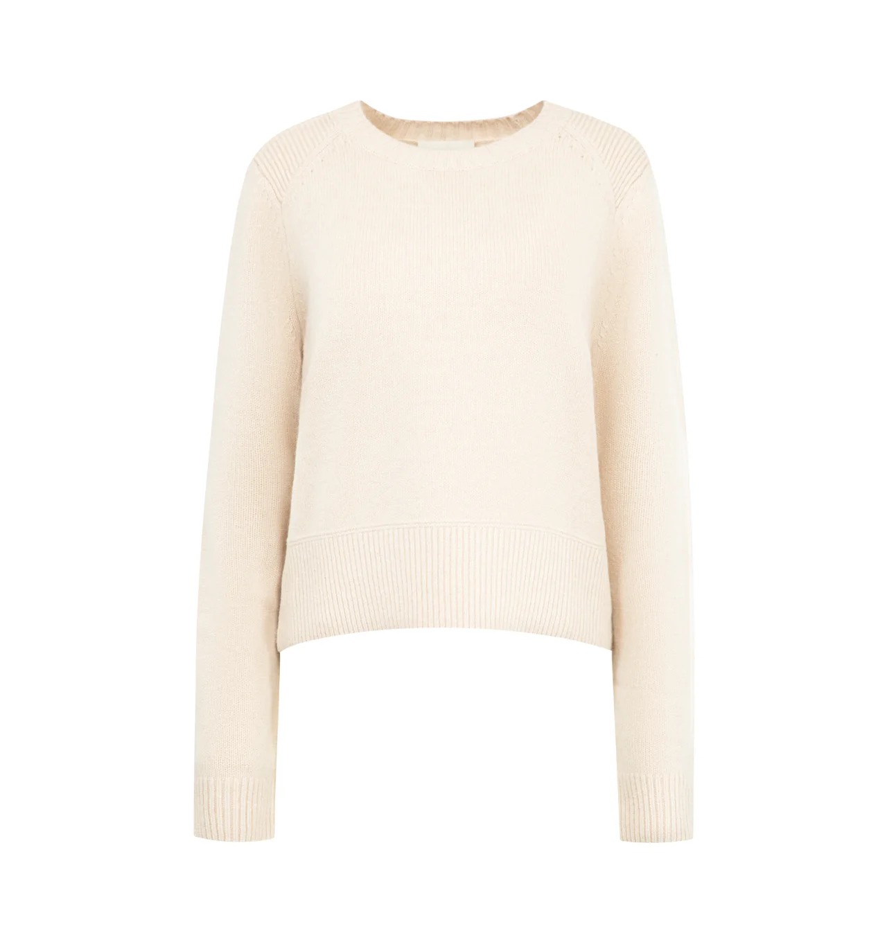 Isabel Marant wool-cashmere blend sweater featuring round neckline, long sleeves, ribbed finishes, tubular and openwork knit details, short and straight cut. 70% RWS wool, 30% cashmere. Made in Hong Kong. DESIGNER STYLE ID: 26PPU0844FA-B1L07I COLOR: 23EC ECRU