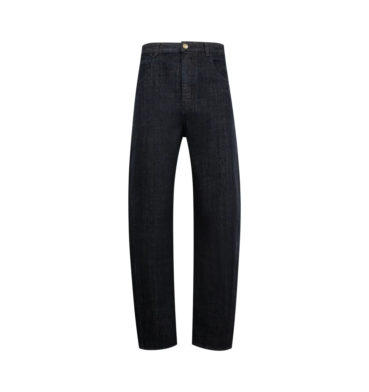 JACQUEMUS The Mirada de-Nimes Jeans featuring mid-rise, belt loops, five-pocket styling, button fly, logo printed at back pocket and corozo hardware. 100% cotton. Lining: 65% polyester, 35% cotton. Made in Portugal. DESIGNER STYLE ID: 25EPAM00053AD00036 COLOR: 390 NAVY