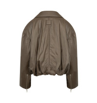 LOEWE Biker Jacket in lightweight nappa lambskin featuring a balloon silhouette with a padded construction, regular fit, short length, zipped front fastening, cuffs and pockets, buckle belt at the hem, fully lined and anagram embossed leather patch placed at the back. Nappa. Made in Italy. This item may be restricted for online purchase to international clients. For assistance purchasing this item please contact our dedicated stylist team at personalshopping@hirshleifers.com. DESIGNER STYLE ID: S359Y34L93 COLOR: 4160 KHAKI GREEN