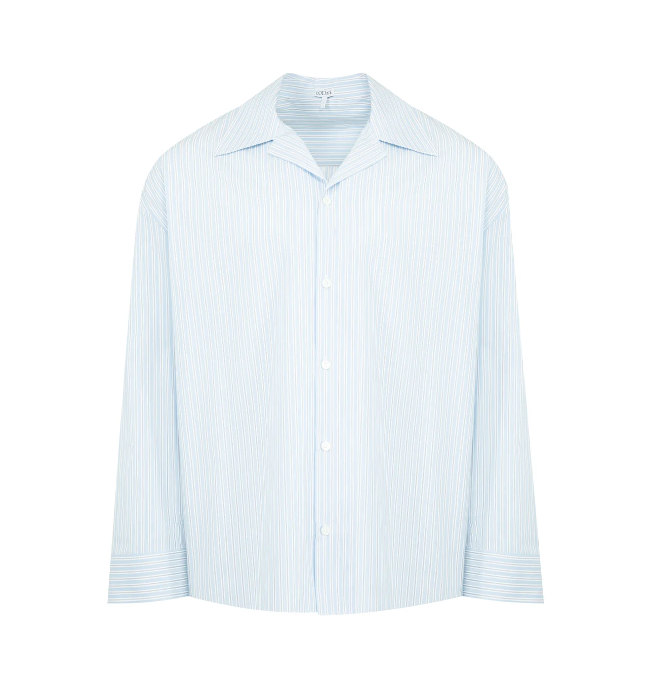 LOEWE Shirt in lightweight cotton featuring a vertical stripe pattern with horizontal stripes at the cuffs, regular fit, regular length, camp collar, button front fastening, buttoned cuffs, chest patch pocket and LOEWE L embroidery placed at the front. Cotton. Made in Italy. DESIGNER STYLE ID: H526Y05XAI COLOR: 4933 WHITE/NAVY