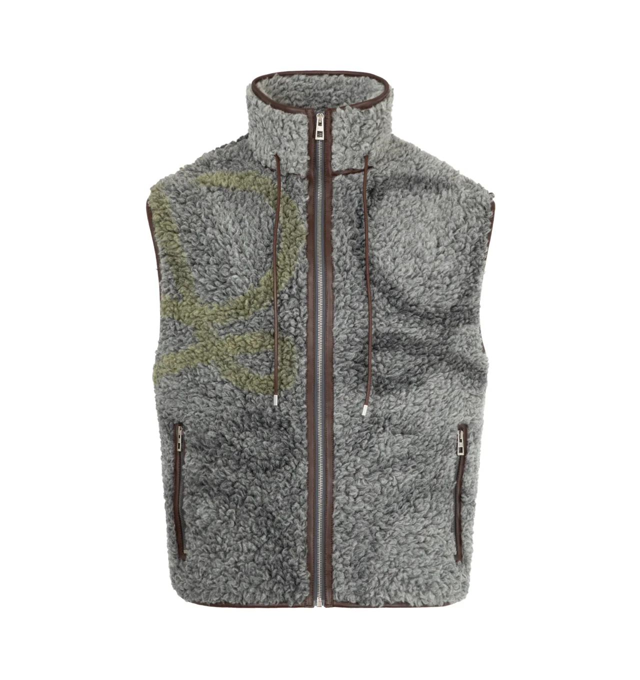 Loewe Men's Vest in medium-weight fleece jacquard featuring a placed Anagram motif at the front and back. Relaxed fit, regular length featuring high collar with leather drawstring, leather binding, zip front fastening and zipped jet pockets. Wool/Polyamide. Made in Italy. DESIGNER STYLE ID: H526Y02X36 COLOR: 9990 MULTICOLOR