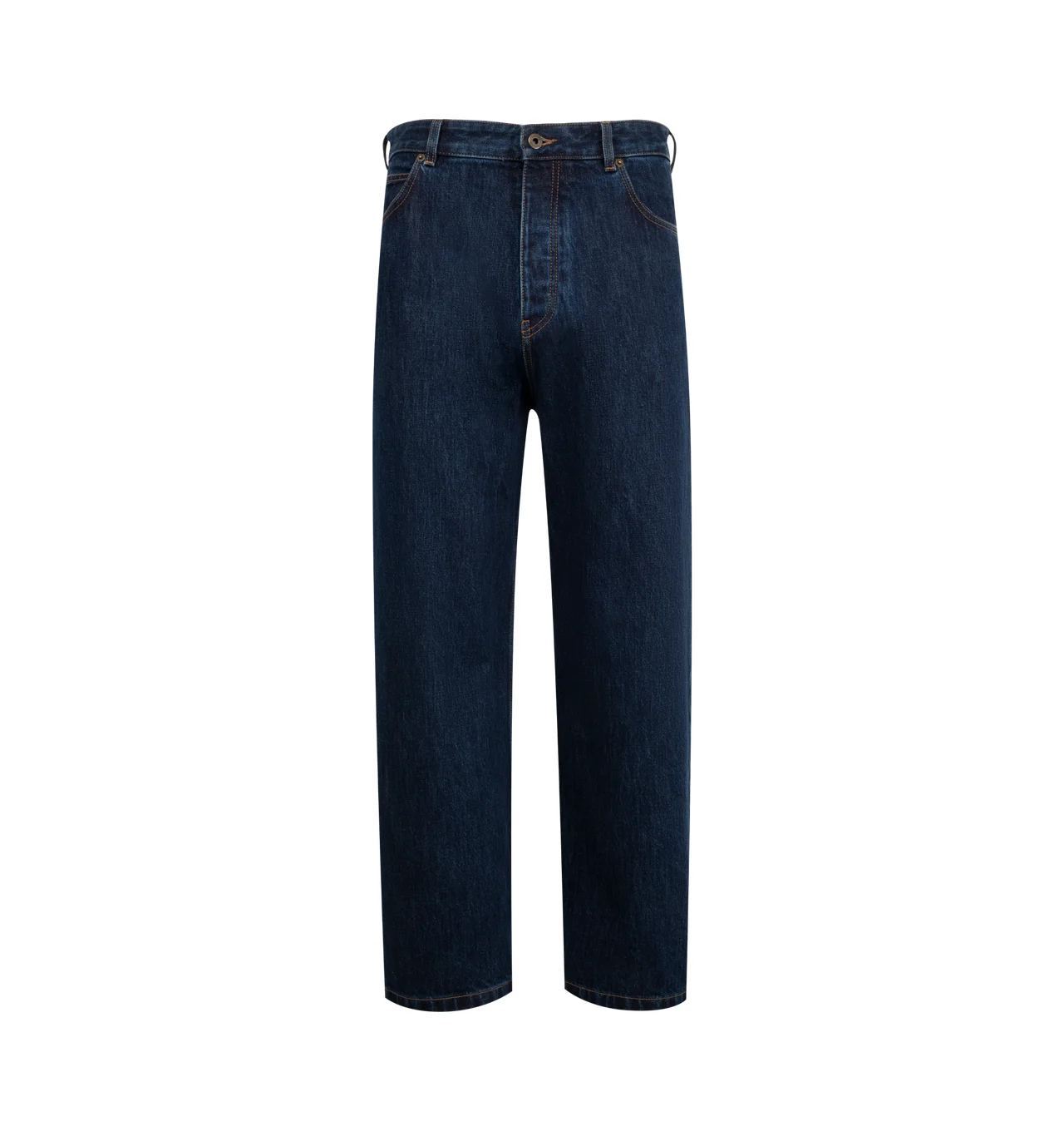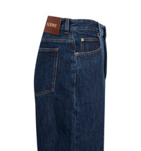 LOEWE Jeans in medium-weight cotton denim featuring relaxed fit, regular length, mid waist, curved leg, concealed zip fly, five pocket style and LOEWE embossed leather patch placed at the back. 100% cotton. Made in Italy. DESIGNER STYLE ID: H526Y11WA1 COLOR: 2834 RAW DENIM