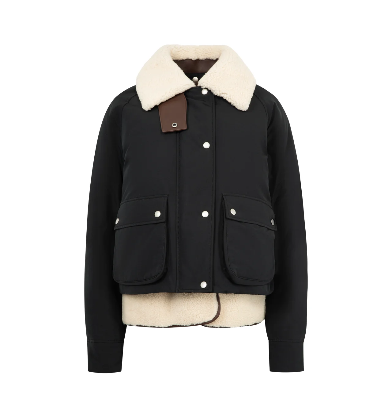 LOEWE Puffer in shearling and cotton blend featuring a detachable shearling vest and collar, regular fit, short length, leather chin strap, snap button and concealed zip front fastening, buttoned gusset flap pockets and LOEWE Anagram embossed leather patch placed at the back. Cotton, polyamide. Made in Italy. DESIGNER STYLE ID: S359Y02XFX COLOR: 1100 BLACK
