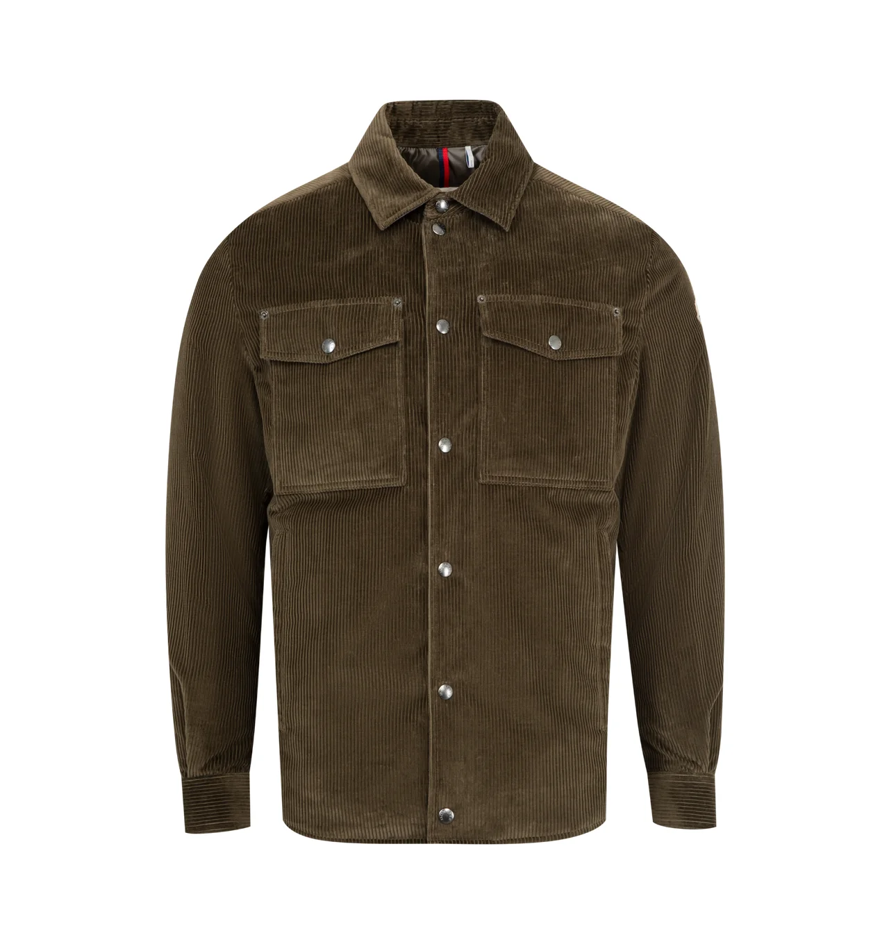 MONCLER Ambroisie Corduroy Down Shirt Jacket featuring polyester lining, down-filled, collar with flannel lining, zipper and snap button closure, zipped pockets, chest pockets with snap button closure and adjustable cuffs. 100% cotton. Lining: 100% polyester. Padding: 90% down, 10% feather. Made in Romania. DESIGNER STYLE ID: 1G000-23-549UU COLOR: 273 BROWN