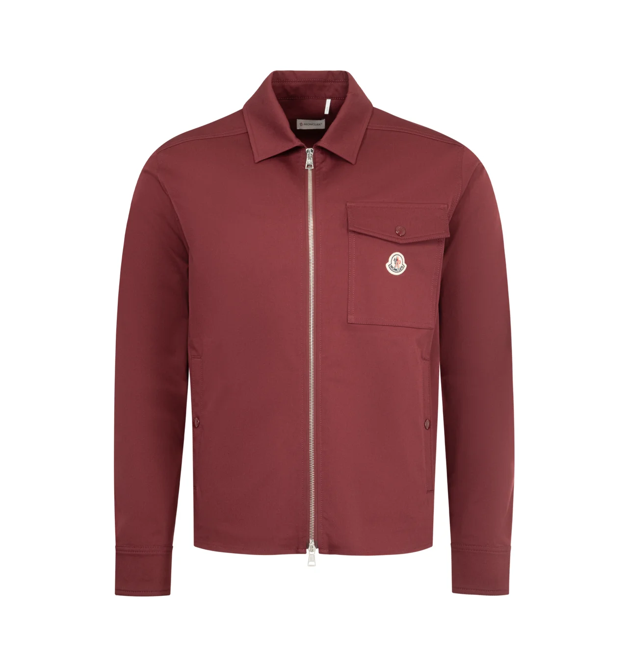 MONCLER Cotton Blend Gabardine Shirt Jacket featuring zipper closure, pockets with snap button closure, chest pocket and adjustable cuffs. 98% cotton, 2% elastane/spandex. DESIGNER STYLE ID: 2F000-23-57448 COLOR: 480 DARK RED
