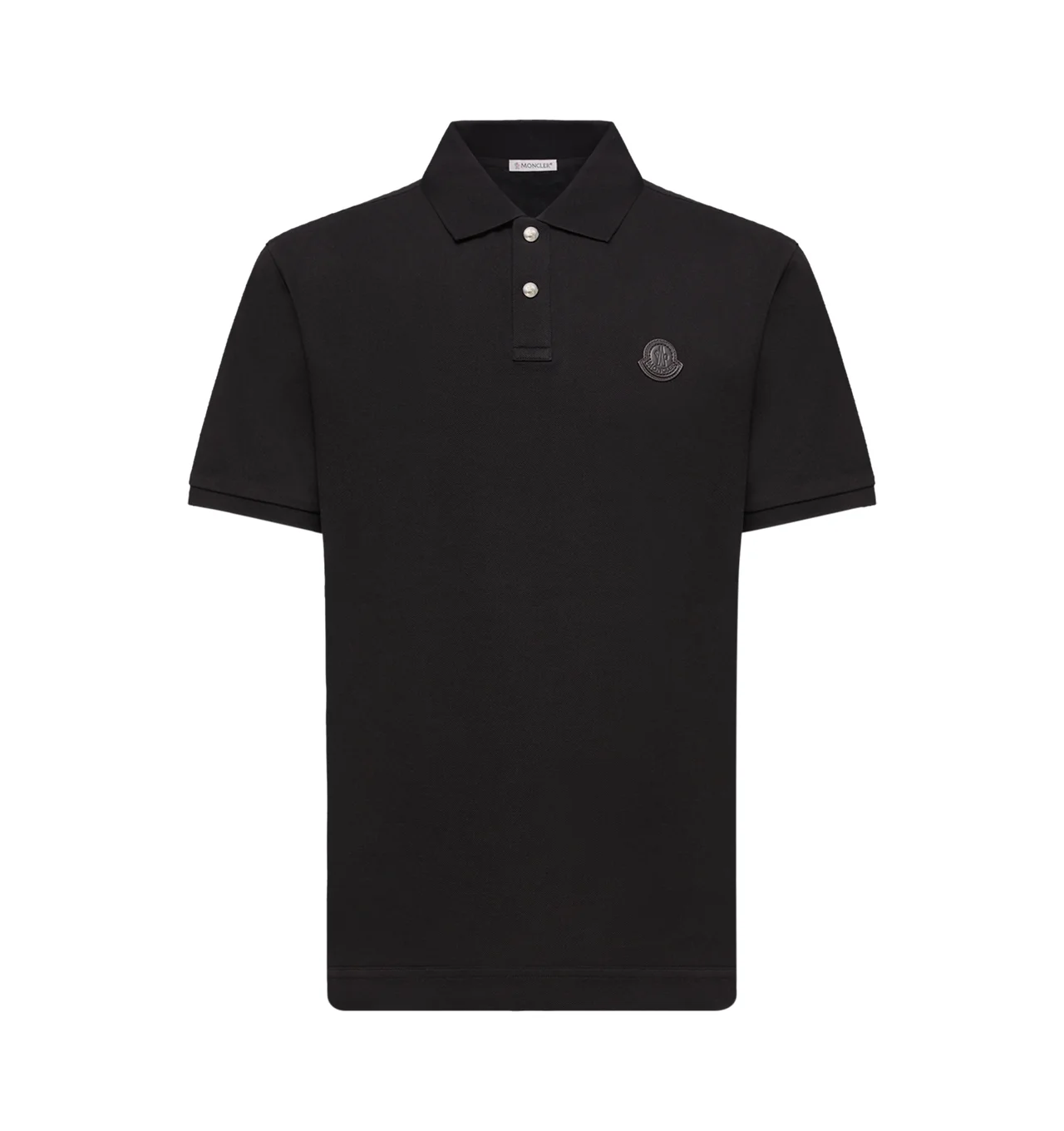 MONCLER Logo Patch Cotton Piquet Polo Shirt featuring cotton piquet, collar with snap button closure, short sleeves, ribbed collar and cuffs and leather logo patch. 100% cotton. Made in Turkey. DESIGNER STYLE ID: 8A000-12-84556 COLOR: 999 BLACK