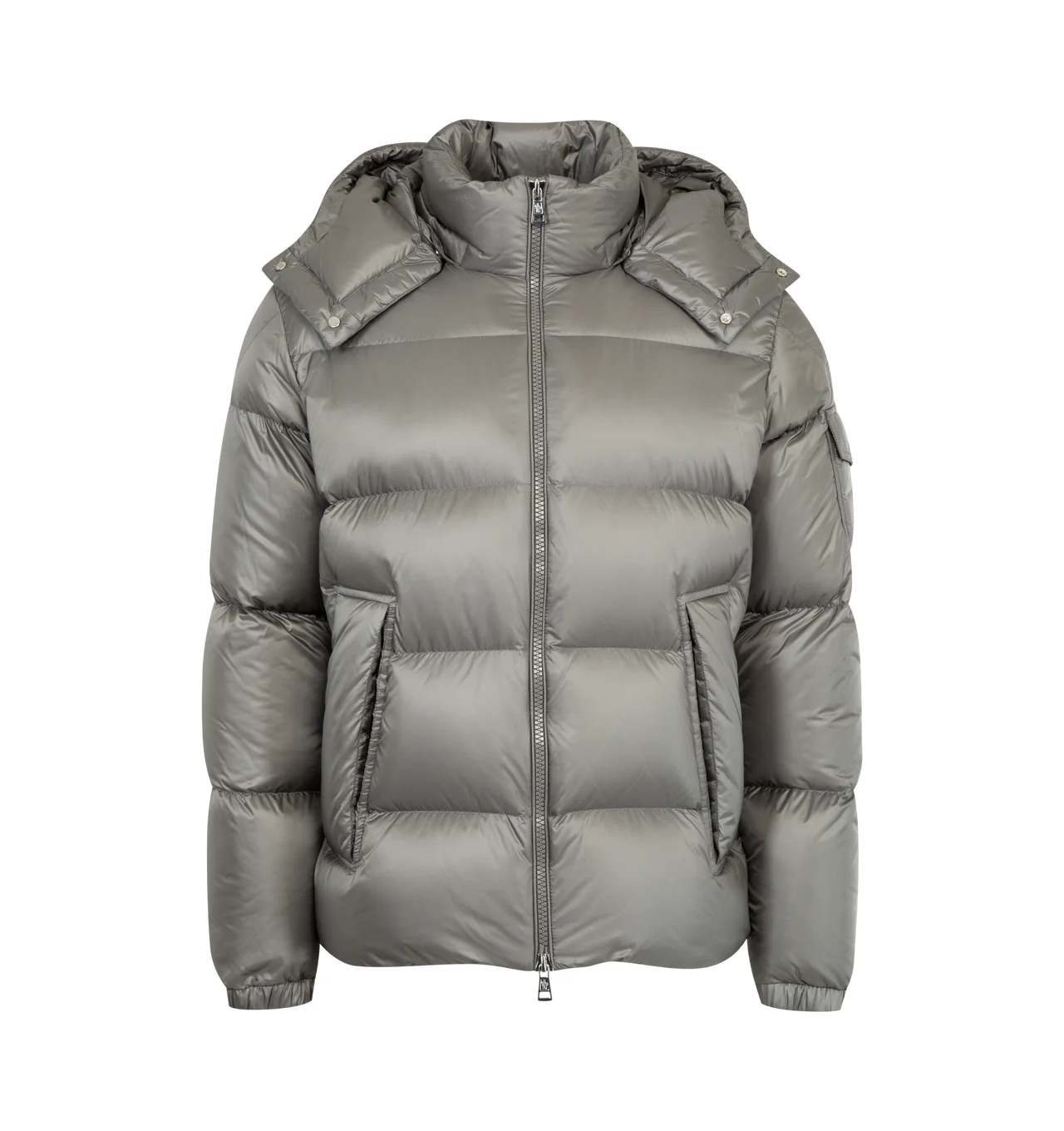 MONCLER Couyere Hooded Short Down Jacket featuring micro ripstop lining, down-filled, detachable and adjustable hood, zipper closure, zipped pockets, sleeve pocket with snap button closure, elastic cuffs and hem with drawstring fastening. 100% polyamide/nylon. Padding: 90% down, 10% feather. Made in Italy DESIGNER STYLE ID: 1A001-58-597XQ COLOR: 905 GREY