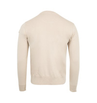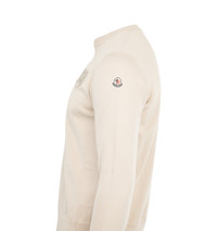 MONCLER Embroidered Monogram Cotton Sweater featuring crew neck, interlock knit, gauge 12 and embroidered monogram patch. 100% cotton. DESIGNER STYLE ID: 9C000-13-M1113 COLOR: 216 CREAM