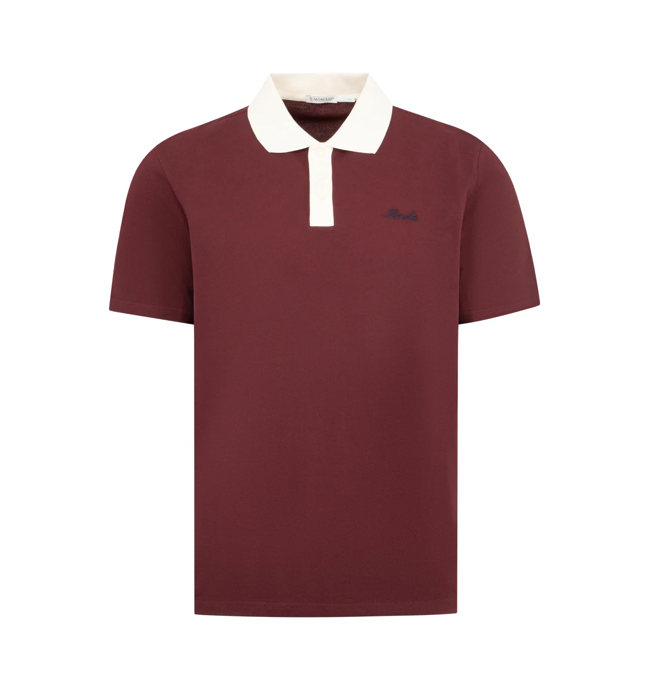 MONCLER Embroidered Logo Cotton Piquet Polo Shirt featuring cotton piquet, polo collar, snap button closure, short sleeves and embroidered logo. 100% cotton. Made in Turkey. DESIGNER STYLE ID: 8A000-03-89A16 COLOR: 480 DARK RED