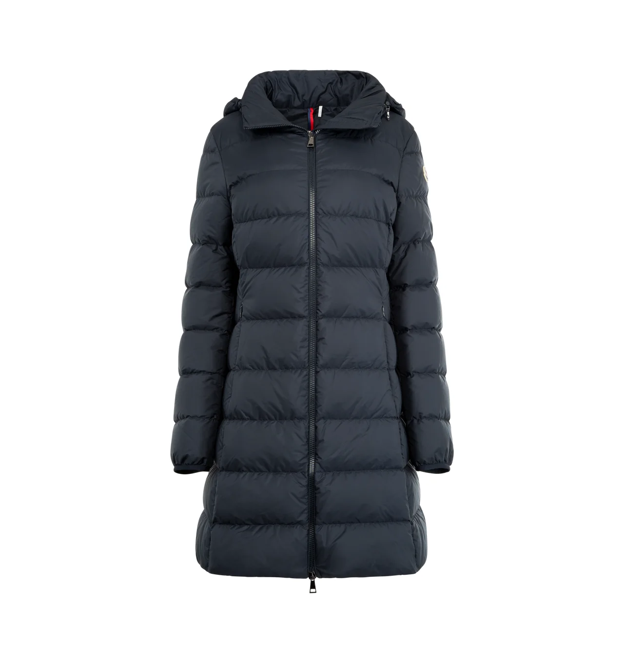 MONCLER Gie Hooded Long Down Jacket featuring rainwear lining, down-filled, pull-out hood with concealed zipper, zipper closure, zipped pockets and felt logo. 100% polyamide/nylon. Padding: 90% down, 10% feather. DESIGNER STYLE ID: 1C000-37-539YH COLOR: 775 NAVY