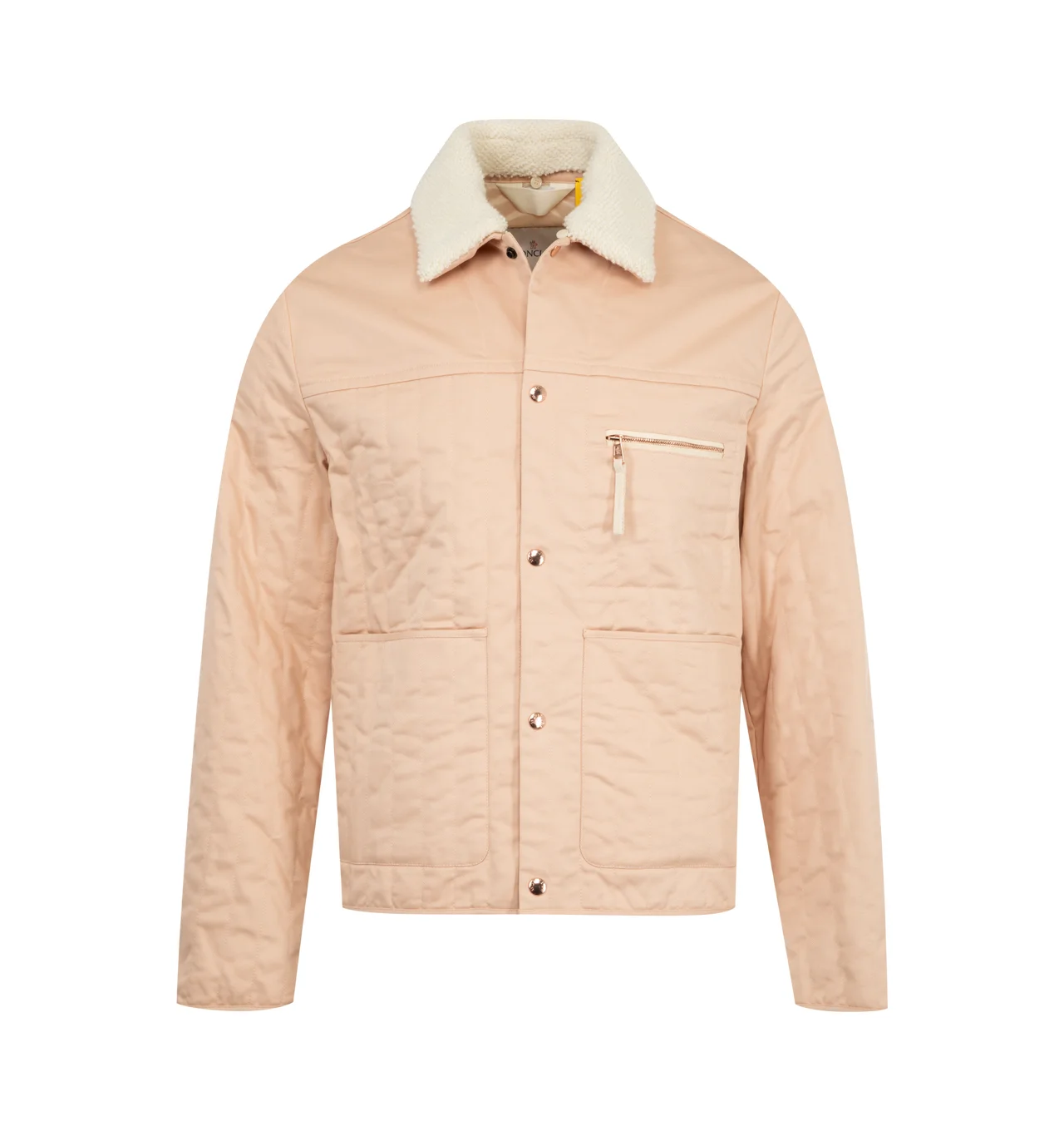 Moncler x Gilga Farm Designed by Donald Glover Kishus Padded Shirt Jacket featuring stretch cotton gabardine, longue saison lining, padded, detachable knit collar, snap button closure, patch pockets, chest pocket with zipper closure and logo patch. 74% cotton, 24% lyocell, 2% elastane/spandex. Lining: 100% polyamide/nylon. Collar: 100% virgin wool. Padding: 100% polyester. Made in Romania. DESIGNER STYLE ID: 1A000-04-598EC COLOR: 20R LT PINK