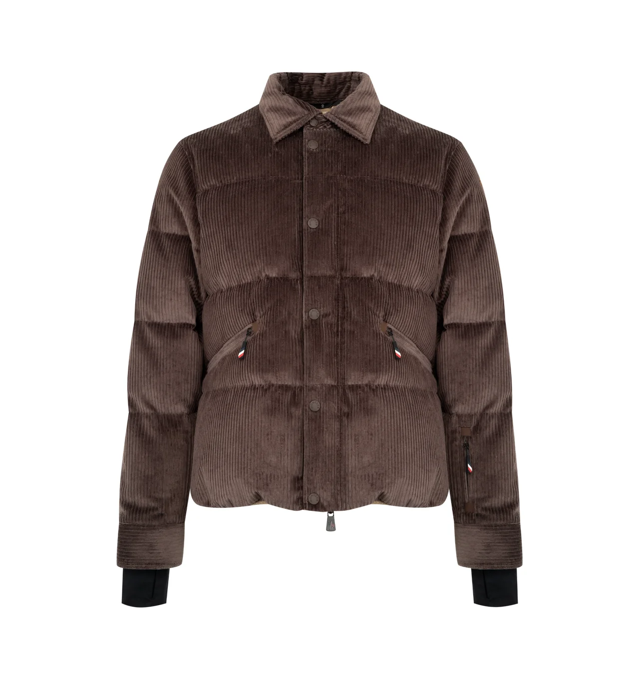 MONCLER GRENOBLE Elgon Corduroy Down Ski Jacket featuring 2L technical corduroy, micro ripstop lining, down-filled, pull-out hood, YKK® AquaGuard® Highly Water Resistant zipper and snap button closure, pockets with YKK® AquaGuard® Highly Water Resistant zipper closure, inner media pocket, ski pass pocket, powder skirt, hem with drawstring fastening and synthetic material logo patch. 98% cotton, 2% elastane/spandex. Lining: 100% polyester. Padding: 90% down, 10% feather. Made in Romania. DESIGNER STYLE ID: 1A000-07-597WG COLOR: 262 BROWN
