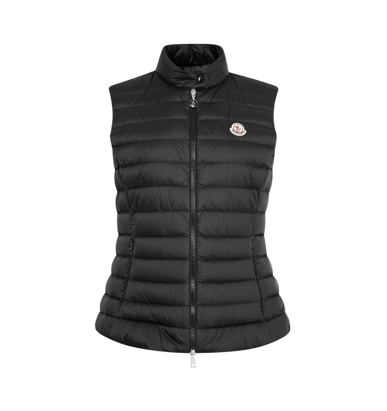 MONCLER Igens Down Vest featuring recycled longue saison, water-repellent main fabric, recycled longue saison lining, down-filled, collar with snap button closure, zip closure and zipped pockets. 100% polyamide/nylon. Padding: 100% polyester. Made in Romania. DESIGNER STYLE ID: 1A000-87-597YF COLOR: 999 BLACK
