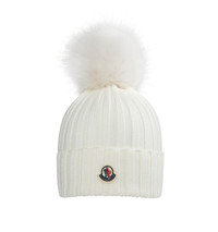 MONCLER Wool Beanie with Pom Pom featuring Merino wool, ribbed knit and faux fur pom pom. 100% virgin wool. DESIGNER STYLE ID: 3B000-64-M1131 COLOR: 034 NATURAL