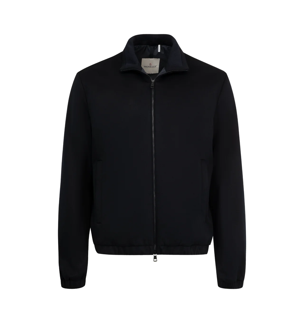 MONCLER Simorre Jacket featuring cotton jersey technique, Airsoft lining, stand collar, zipper closure, zipped pockets, inner patch pocket with snap button closure, elastic cuffs, inner fabric description label and logo patch. 90% cotton, 10% polyamide/nylon. Lining: 100% polyester. Made in Romania. DESIGNER STYLE ID: 1A000-79-598SG COLOR: 779 NAVY